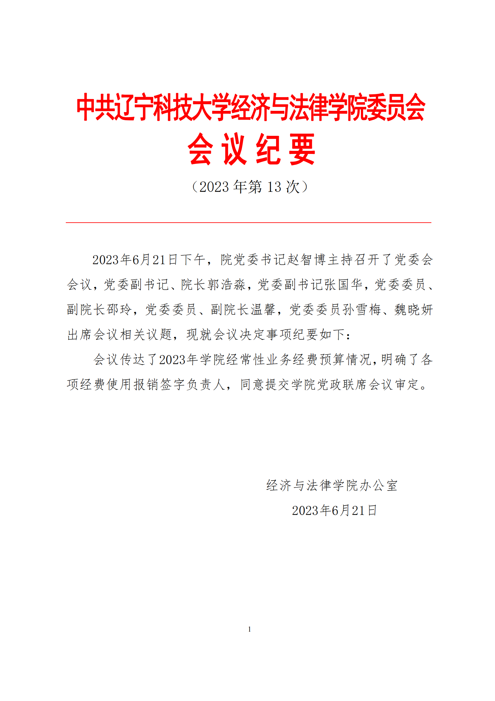 中共乐竞·体育(中国)官方网站经济与法律学院委员会会议纪要(2023年第13次)
