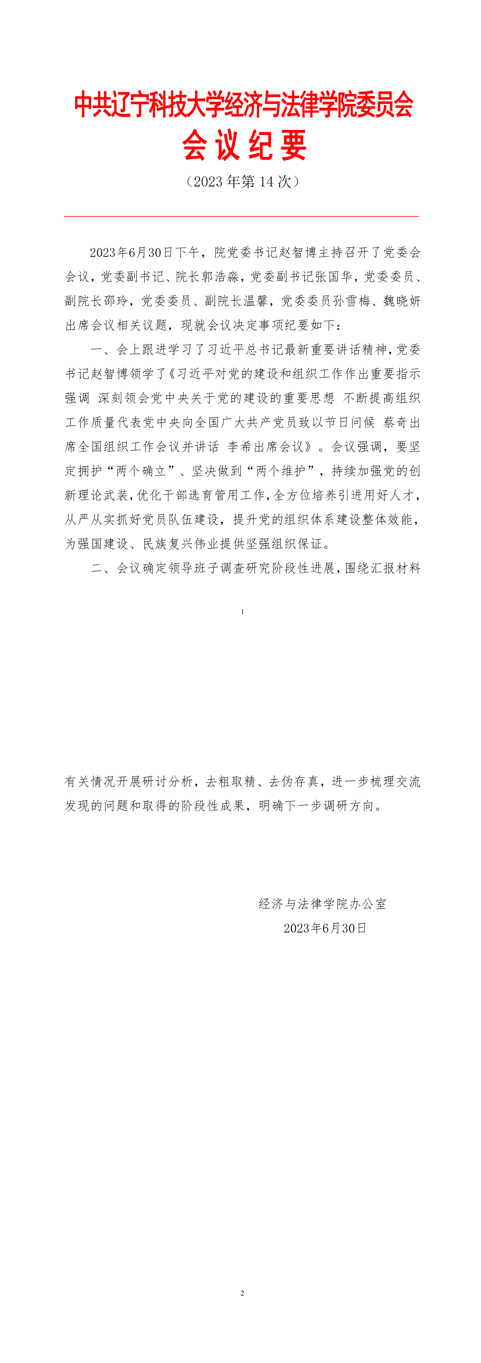 中共乐竞·体育(中国)官方网站经济与法律学院委员会会议纪要(2023年第14次)