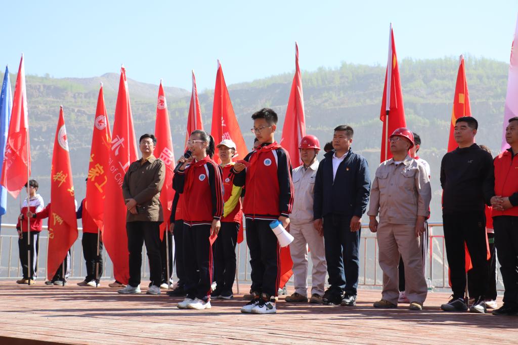 活动当日,参与师生共同前往齐大山铁矿公路采石场,跟随“暖风”郭明义爱心团队徒步3公里矿山路。烈日下,学生们切身感悟到矿工日常劳作的艰辛。到达观景台后,活动正式拉开序幕。主持人宋昕首先介绍出席的领导和嘉宾,小学生代表为工人系上红领巾,同时校“暖风”团队学生代表为工人献上爱心礼物。