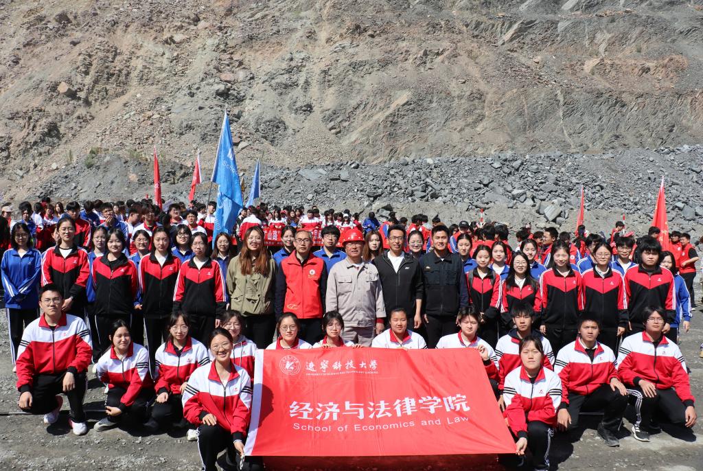 4月26日,经法学院师生跟随“暖风”郭明义爱心团队走进齐大山铁矿公路采石场,开展“大手拉小手,跟着郭明义走矿山路”主题党日活动。学院党委书记赵智博、党委副书记张国华、团委副书记张鹏飞、组织员王艺霏带领40余名经法学子前往矿山,参加此次活动。