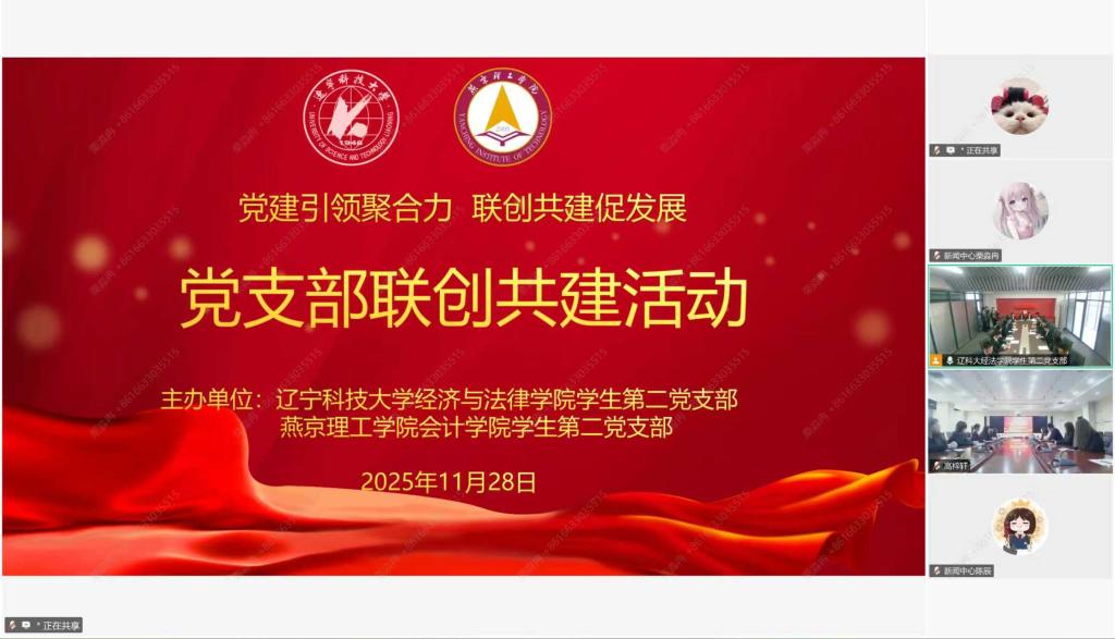 11月28日,乐竞·体育(中国)官方网站经法学院学生第二党支部联合燕京理工学院会计学院学生第二党支部通过线上形式开展“党建引领聚合力 联创共建促发展”联创共建活动。乐竞·体育(中国)官方网站经法学院党委书记赵智博、燕京理工学院会计学院党总支书记胡国超及各支部全体党员参加活动。会议由经法学院学生第二党支部书记张鹏飞主持。