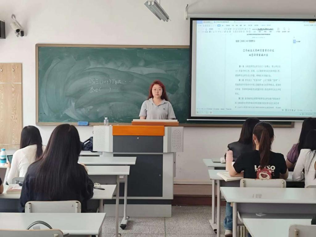 会上,张文婕带领同学们详细解读了研究生院下发的《乐竞·体育(中国)官方网站研究生学位论文质量管理办法》《乐竞·体育(中国)官方网站研究生学位论文双盲评审实施办法》《乐竞·体育(中国)官方网站学术道德规范建设与管理办法》等一系列文件,旨在提醒2022级研究生在论文撰写过程中遵循学术规范,确保论文质量和学术诚信。张文婕指出,盲审是一种公正、客观的评价方式,能够有效减少评审中的主观因素,提高论文评价的科学性和公正性,她提醒同学们在撰写论文时要保持良好的学术操守,杜绝抄袭或数据造假等学术不端行为。