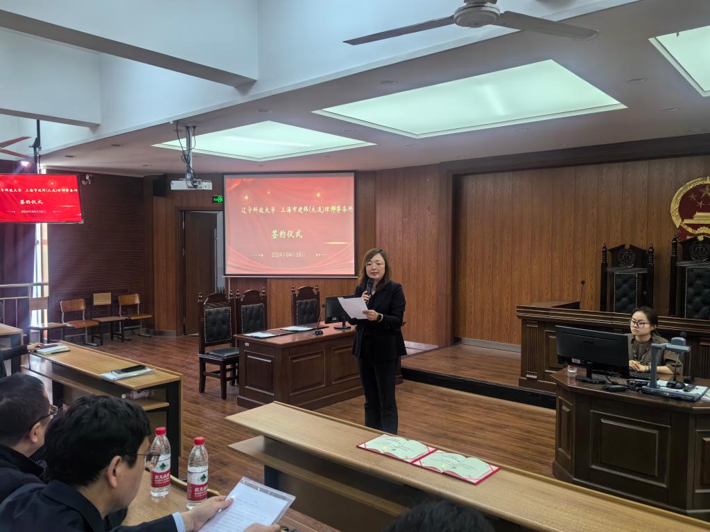 4月16日下午,乐竞·体育(中国)官方网站经济与法律学院和上海市建纬(大连)律师事务所实践教学基地签约仪式在我校明德楼模拟法庭举行。本次签约仪式由经法学院副院长邵玲主持。上海市建纬(大连)律师事务所副主任王守军、律师王俊强、乐竞·体育(中国)官方网站经法学院院长郭浩淼、法硕中心主任武婷婷以及法硕23级和法学23级学生参加了签约仪式。
