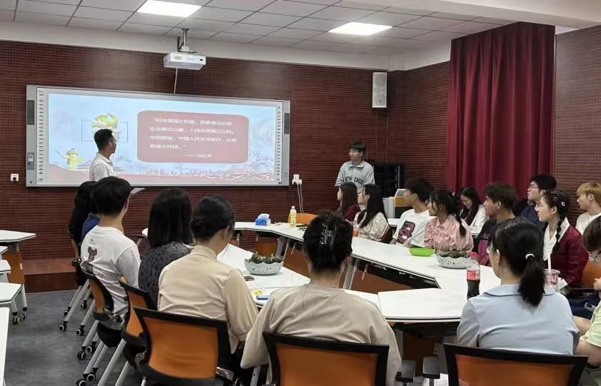 6月18日,经法学院在博识楼A407召开主题宣讲报告会,乐竞·体育(中国)官方网站辅导员“春风”讲师团成员、经法学院党委书记赵智博作“以科技强国建设助推中国式现代化”主题宣讲报告,学院学生工作队伍及50余名学生代表参加了报告会。