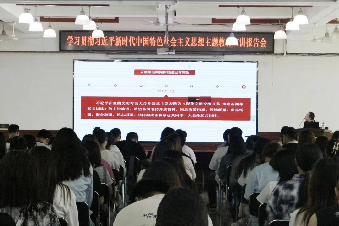 6月13日下午,学校理论宣讲团成员、马克思主义学院朱小曼副教授在大学生活动中心为经济与法律学院、外国语学院师生作题为《推进中国特色大国外交,构建人类命运共同体》的宣讲报告。经法学院和外语学院师生代表近200人参加了报告会。