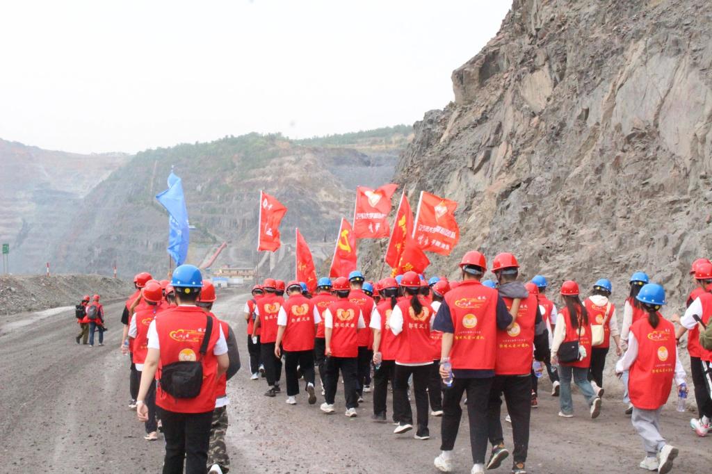 走在郭明义老师已经走了40多年的崎岖颠簸的矿山路上,大家头戴蓝色安全帽,身穿红马甲,在艰苦的环境中感受敬业的实质,在亲切的氛围里体悟精神的力量。尽管道路崎岖,泥土飞溅,但师生们的热情丝毫不减,踏着坚毅的步伐奋勇向前。在活动过程中,郭明义老师结合主题教育为全体师生讲党课,大家认真聆听,再一次深刻领悟了共产党人的责任与担当。在郭明义老师带领下,大家以饱满的热情和昂扬的姿态齐声高唱《学习雷锋好榜样》和《没有共产党就没有新中国》,展现了经法学子良好的精神风貌。