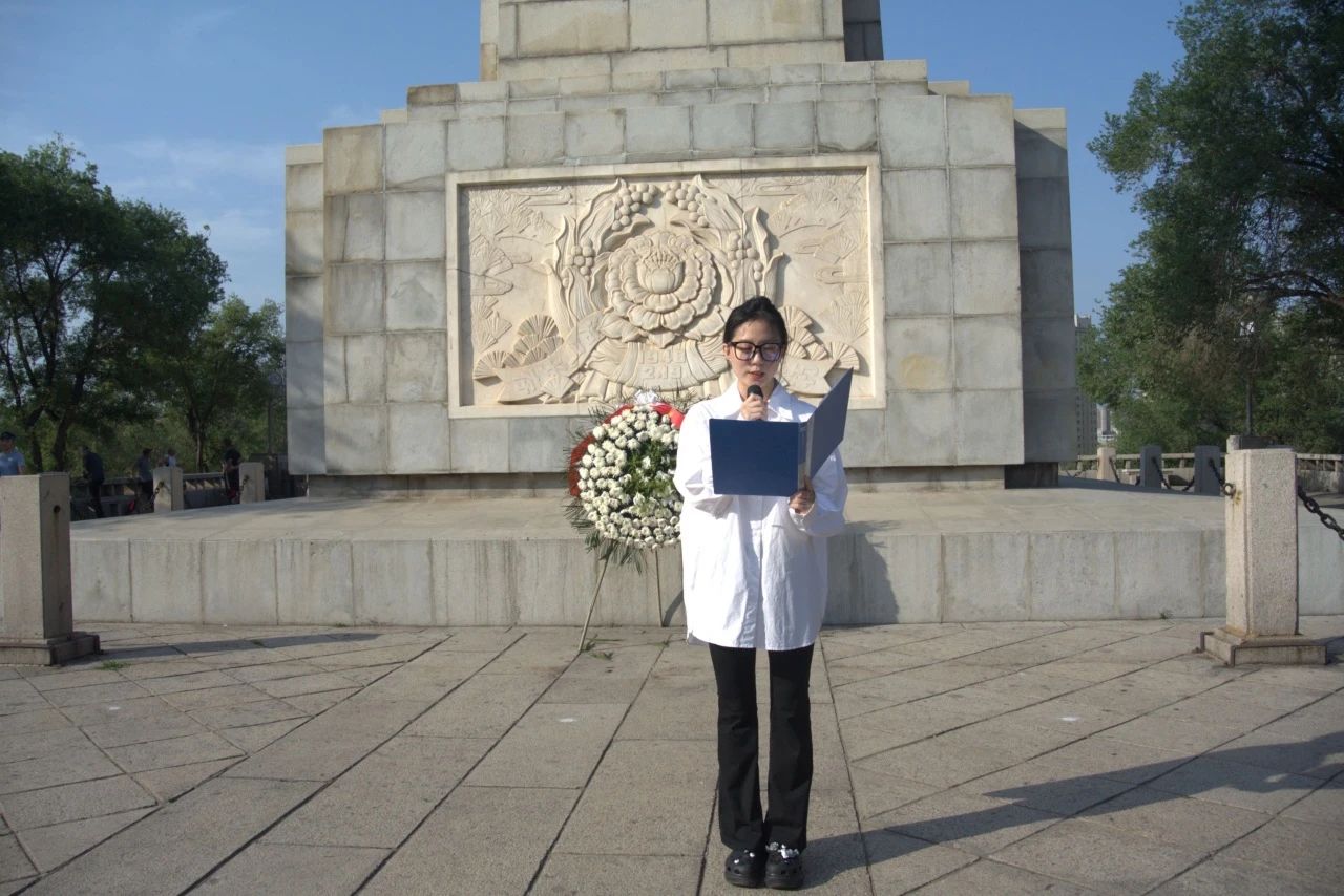 全体党员在经法学院第二党支部书记张鹏飞带领下,面向党旗重温入党誓词,大家举起右拳庄严宣誓,用发自内心的声音抒发着坚定不移听党话、跟党走的决心。最后,大家面对烈士纪念碑敬献鲜花,以三鞠躬的形式表达对革命烈士的敬仰与怀念。精神的伟力,总能带来心灵的震撼;信仰的光芒,总能穿越时空的阻碍。