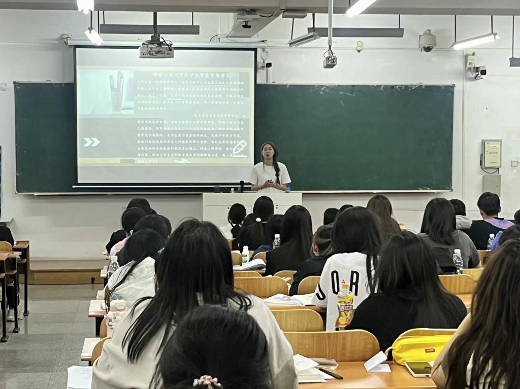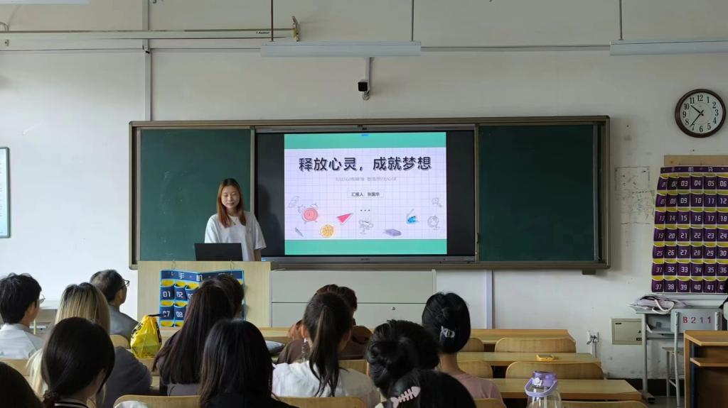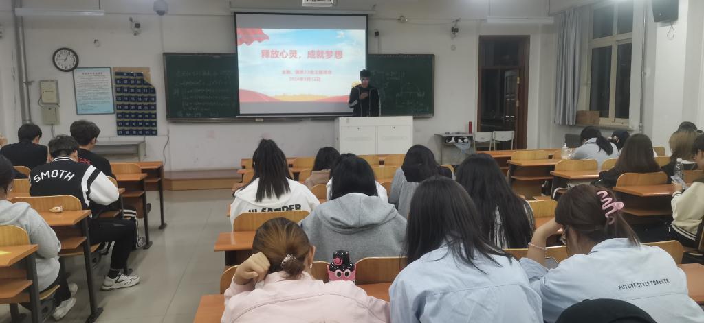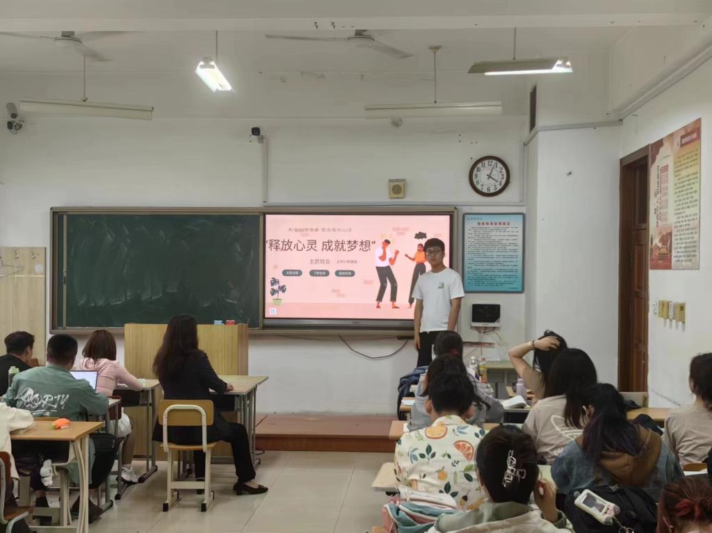 辅导员以“释放心灵 成就梦想”为主题,向同学们普及心理健康知识、解析心理现象,带领学生学习维护心理健康的方法,让学生充分意识到心理健康的重要性,并和同学们分析了大学生常见的心理问题,鼓励大家学会表达自己的情绪,大胆说出自己在学习生活中的困惑,在交流中寻找解决问题的方法,疏解心中的郁结。随后,同学们纷纷表达自己对心理健康的认识和感受,谈到了自己所面对的压力和困惑,辅导员一一解答了学生的困扰。同时,辅导员表示,同学们要认识到每个人都是与众不同的,要学会接纳和欣赏自己,发现自我的独特性,勇敢且坚定地去追求自己的梦想。