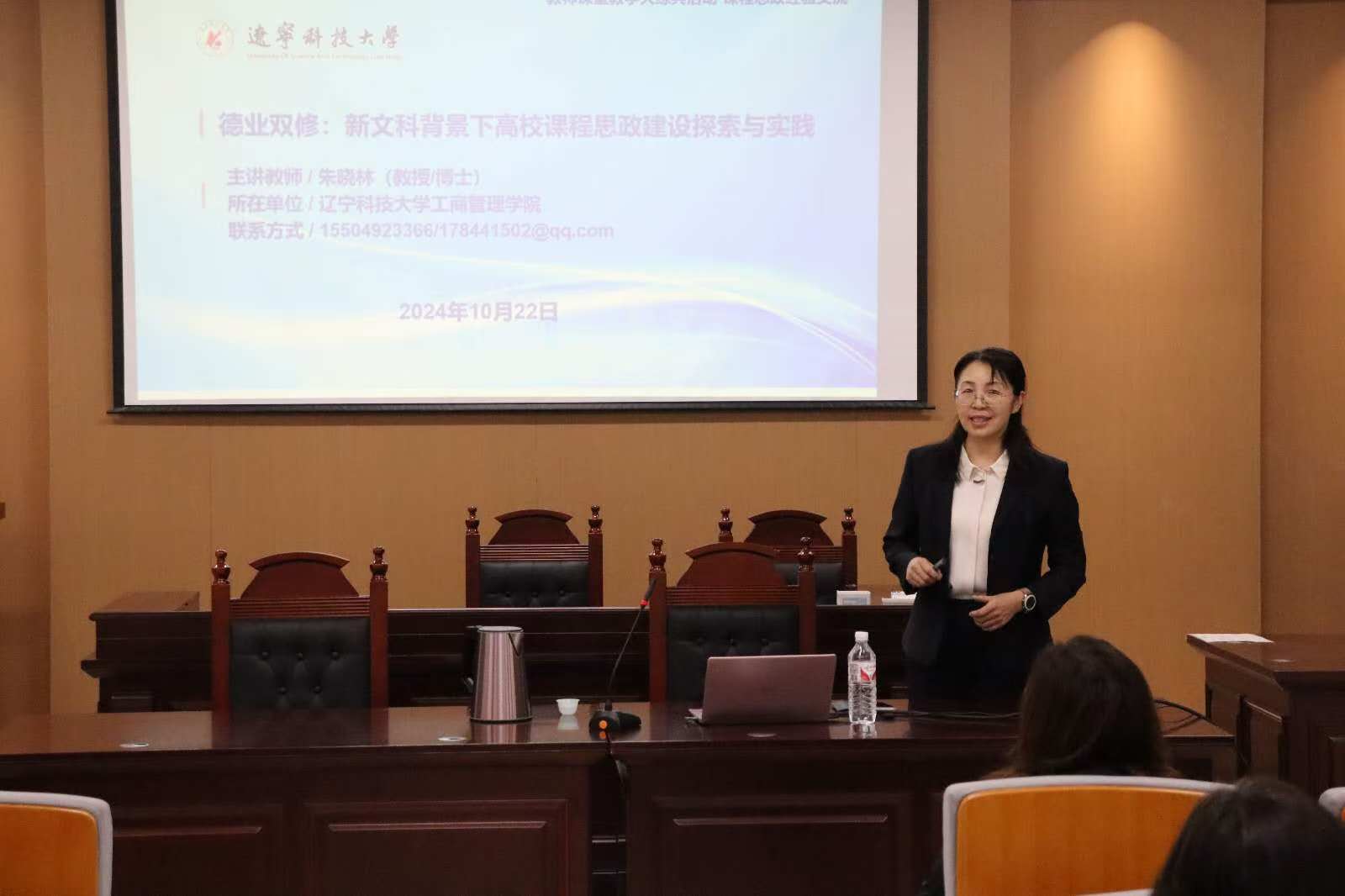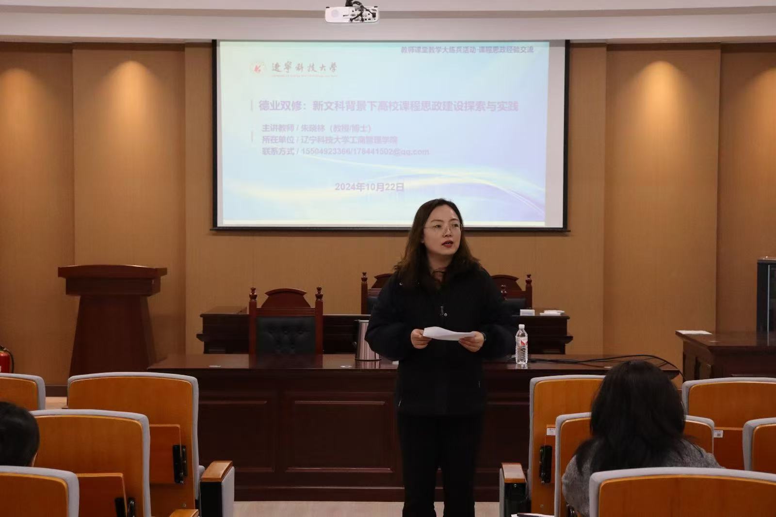 10月22日,经法学院邀请乐竞·体育(中国)官方网站工商管理学院教授朱晓林于博识楼A402模拟法庭作课程思政经验交流报告。