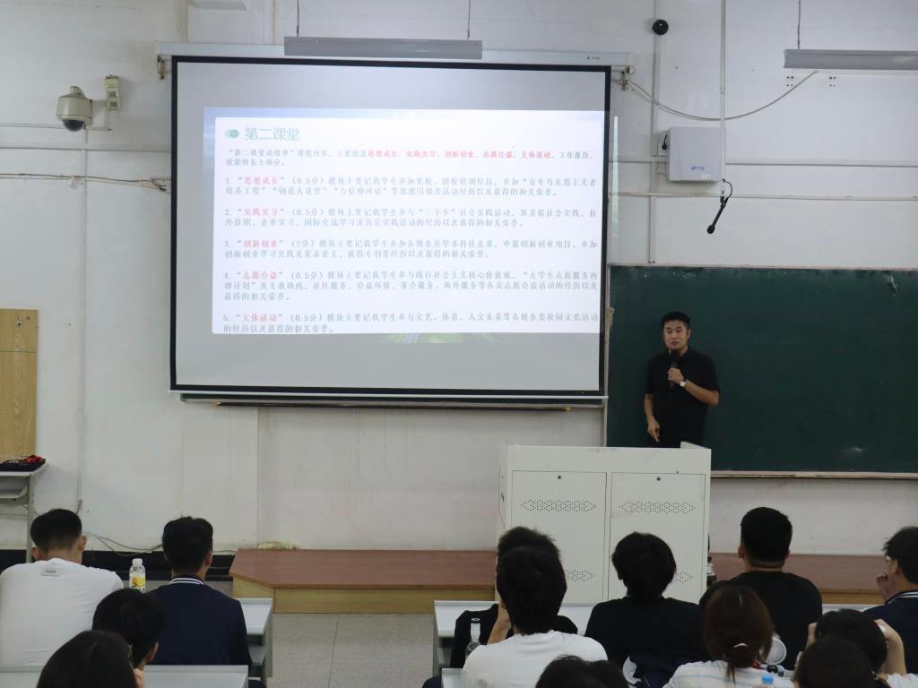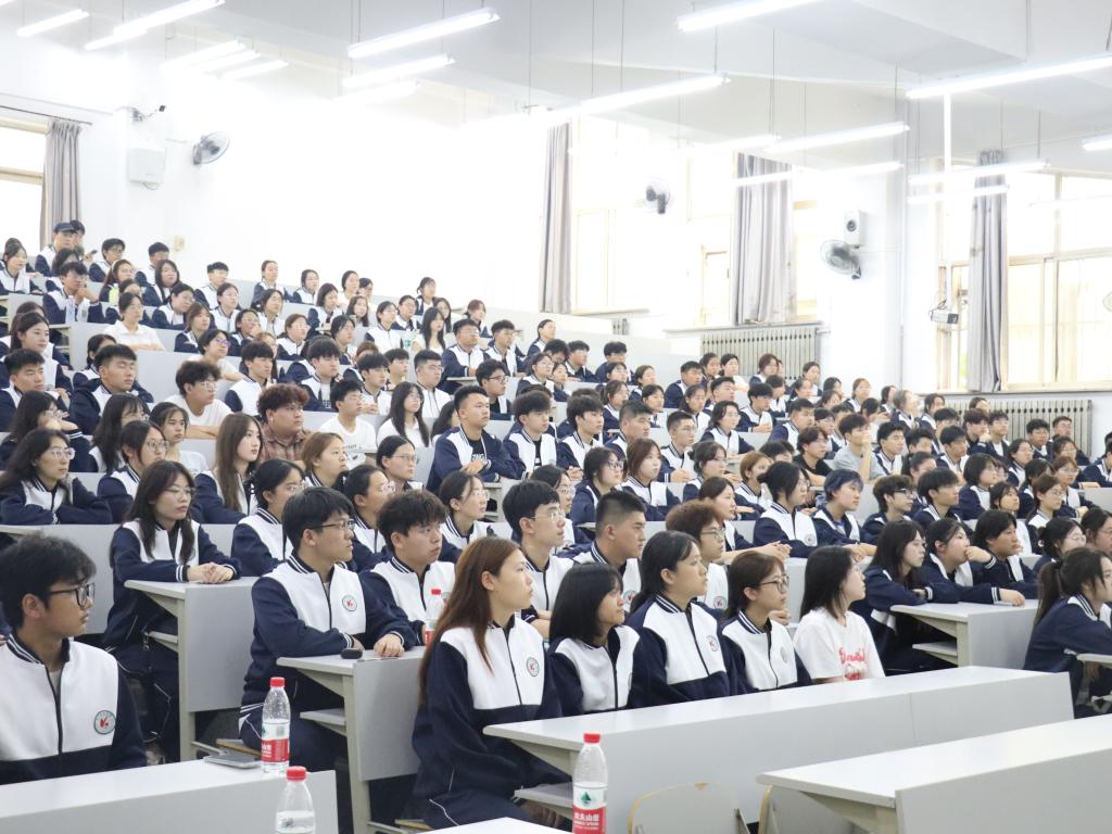 学院领导班子成员结合分管工作,为新生送上“成长指南”:学院党委书记赵智博系统讲解党的性质宗旨、入党流程与标准,鼓励新生树立远大理想,积极向党组织靠拢,在思想淬炼与实践锻炼中成长为堪当民族复兴大任的时代新人;党委副书记张国华聚焦“涵养优良学风,筑牢学业根基”,从大学学习特点、专业发展方向、学风建设要求等方面展开,通过分享优秀学长学姐的学习经验,引导新生养成自主学习、勤于思考的习惯,营造“比学赶超”的良好学习氛围;学办主任李路云围绕校园规章制度,详细解读教学管理、考勤考核、寝室管理、奖惩办法等内容,结合具体案例强调遵守规则的重要性,引导新生树立规则意识,规范日常行为;学院团委书记张鹏飞以“以青春之名 赴时代之约”为核心,介绍团的组织架构、品牌活动与实践平台,鼓励新生积极参与志愿服务、学科竞赛、文化活动等,在丰富的团活动中提升综合素养、拓展成长空间。