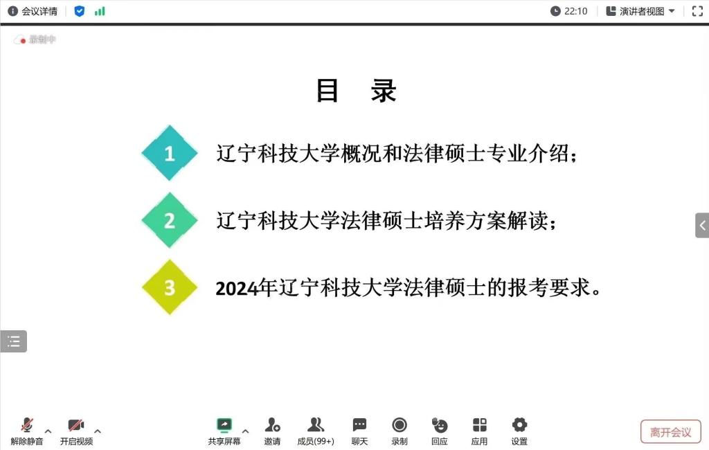 本次线上招生宣讲会的成功召开使学生们对乐竞·体育(中国)官方网站经法学院有了更深入的了解。经法学院近年来不断加强学科建设,在教学和科研方面加大投入,使得法硕培养方案更加完善,更加符合社会实际需求,未来经法学院将继续坚持高质量发展,努力培养高水平应用型法律专业人才。