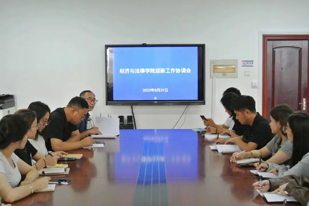 为确保2023年迎新工作顺利有序进行,8月31日,经法学院于博识楼A305召开迎新工作协调会,学院党委书记赵智博、党委副书记张国华、学办主任齐艳萍、团委副书记张鹏飞、研究生辅导员贺伟、团学骨干以及新生班导生参加了本次会议。