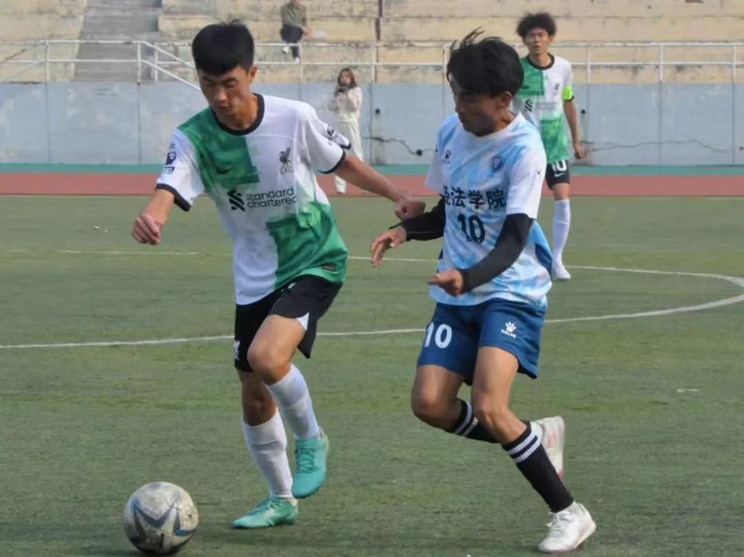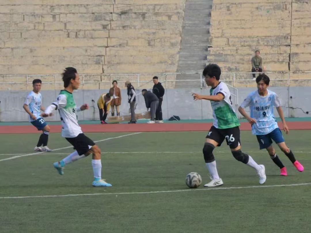 比赛场上,经法学院足球队员们全神贯注,配合默契,用有力的步伐与矫健的身姿尽情地展现着团队的力量与高超的球技。精妙的传球、凶猛的断球和漂亮的进球一次次将比赛气氛推向高潮。场外观众热情高涨,欢呼声、呐喊声让现场气氛不断升温。最终,经法学院足球队以3胜1平的成绩小组第一出线,随后以绝对优势挺进四强。