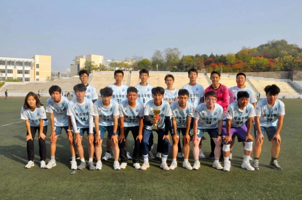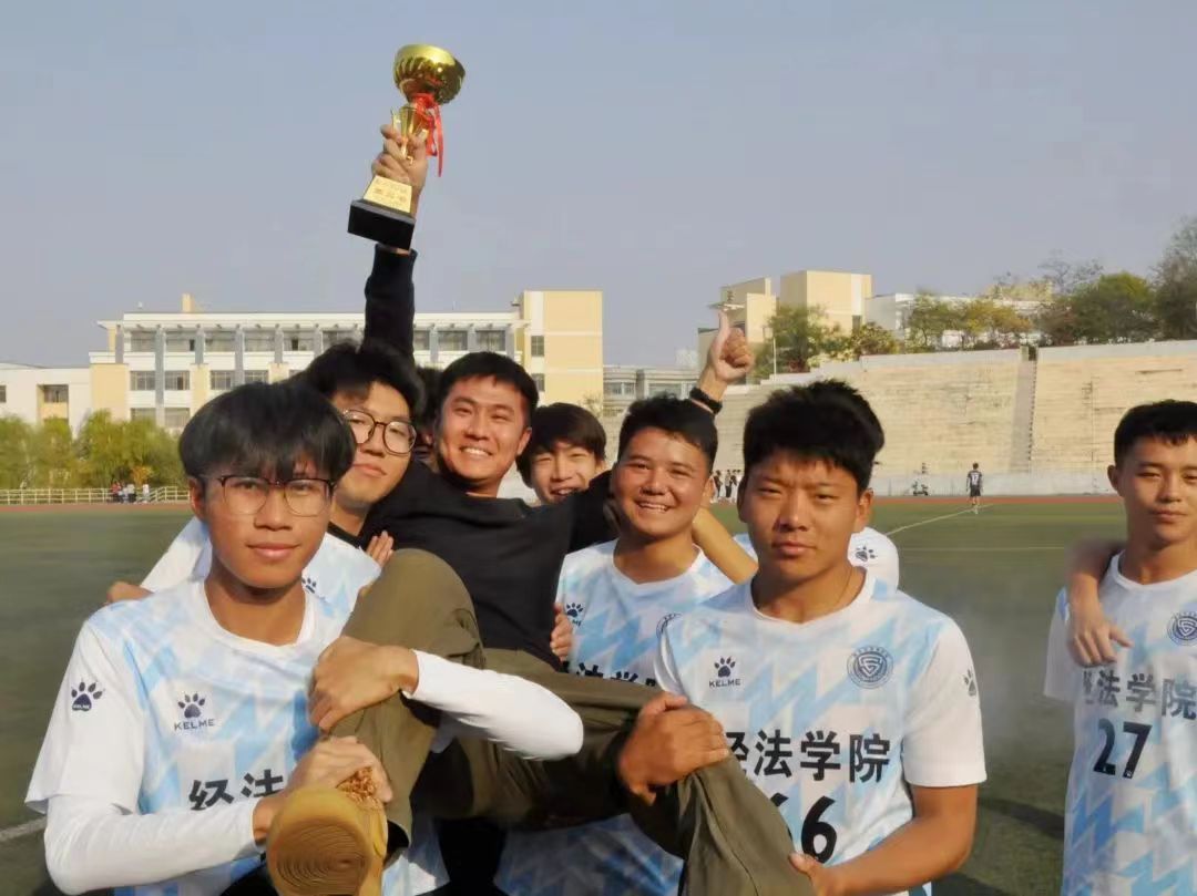 人心齐,泰山移。据悉,本次比赛是经法学院近年来在此项赛事上取得的最好成绩,季军的取得离不开足球队员们的拼搏与努力,同时也离不开学院的支持。在整个足球赛期间,经法学院党委书记赵智博、党委副书记张国华、团委副书记张鹏飞老师多次来到现场,为运动员们加油打气,经法学院团委、学生会全体成员与2023级同学来到主体为经法学院加油,为经法足球队欢呼。