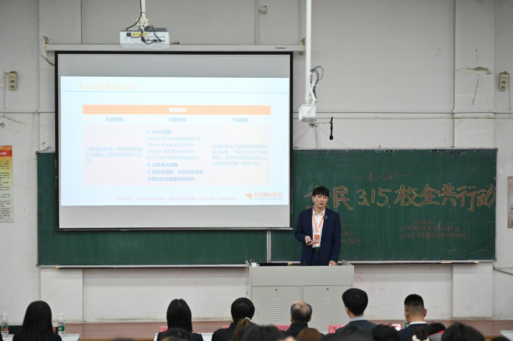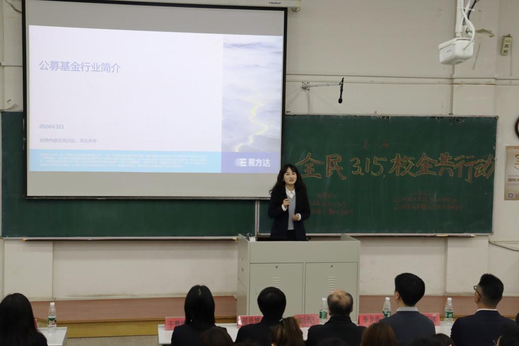 3月14日,经法学院携手东方财富证券鞍山营业部在博学楼A301开展第一届“全民3.15,校企共行动”主题活动。东方财富证券鞍山营业部及中国人民银行鞍山分行、辽宁证监局、辽宁证券期货业协会以及易方达基金公司代表一行10余人、经法学院党政领导及辅导员5人出席活动,学院近300名学生参加了本次活动。