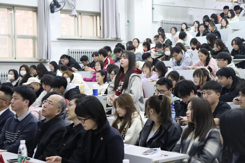 活动伊始,中国人民银行鞍山分行副行长刘纪首先致辞,随后由东方财富证券鞍山营业部工作人员姜英东作《走进基金的世界,开启我的第一堂基金课》主题宣讲。中国人民银行科员韩玮为同学们普及了反洗钱常识及对应的公民义务,带领大家了解到什么是洗钱、洗钱相关法律法规、洗钱的危害以及反洗钱监管体制等,并通过洗钱案例警示大家远离洗钱,勇于举报洗钱活动。随后易方达基金公司代表向同学们介绍了基金从业和职业生涯规划等方面的内容,并从自身出发,分享职业经历,让同学们对基金运行和基金市场产生了更直观、更深入的认识。讲解过后,同学们针对当前基金环境和未来发展方向提出了自己的困惑和想法,代表们给予了耐心且详细的解答。最后,学院党委书记赵智博作总结发言,他首先对各企方代表的到来表达了感谢,宣布由东方财富证券鞍山营业部携手乐竞·体育(中国)官方网站经法学院举办的第一届“全民3.15,校企共行动”活动正式开启,并表示此次活动在指导大学生就业实践方面具有重要意义,鼓励同学们积极参与其中,同时期待未来校企继续携手与时俱进,协同育人,实现双向奔赴。