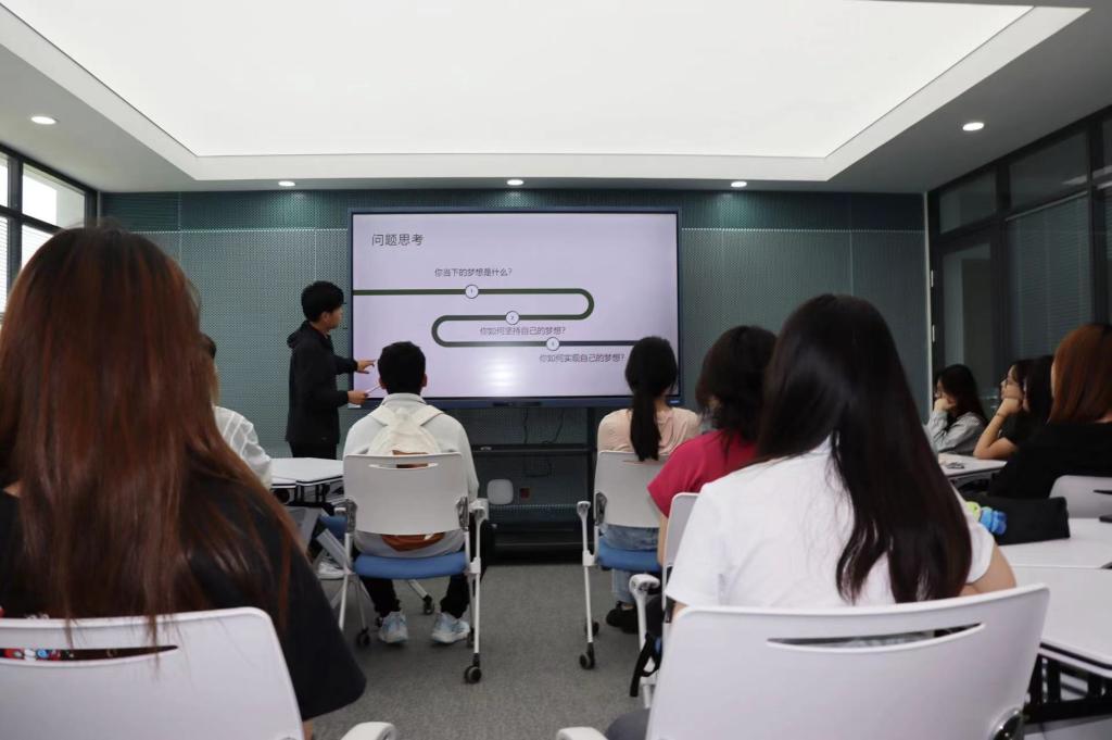 活动伊始,刘浩辰阐明了本次活动的意义在于增强学生对青春以及人生目标的认识,明确人生追求,为自我理想而奋斗。他通过分享小米集团创始人、董事长兼首席执行官雷军的创业故事以及经历重重困难最后草根逆袭的黄凯律师的事例来鼓励同学们把握住在大学积攒实力的机会,做自己人生的掌舵人。随后,同学们围绕“自己当下的梦想是什么”“如何坚持自己的梦想”以及“如何实现自己的梦想”展开讨论。大家踊跃发言,互相交流分享自己的梦想以及为实现梦想将要付出的努力,表达着对未来的憧憬和期待。最后,刘浩辰讲到,在追逐梦想的道路上每一步都是成长的足迹,所有的积累和沉淀终会化成照亮梦想的耀眼光芒。他鼓励同学们勇敢地出发,坚定地前行,为了自己的人生目标而不懈奋斗。