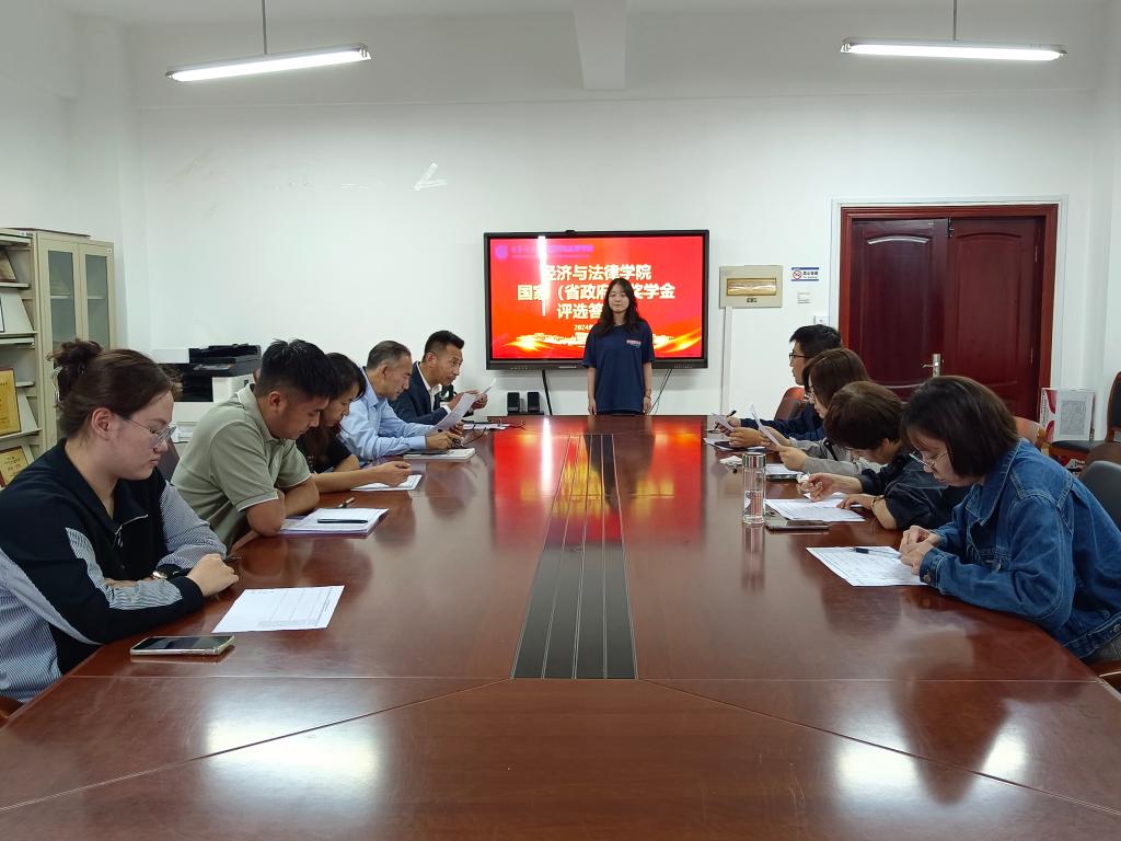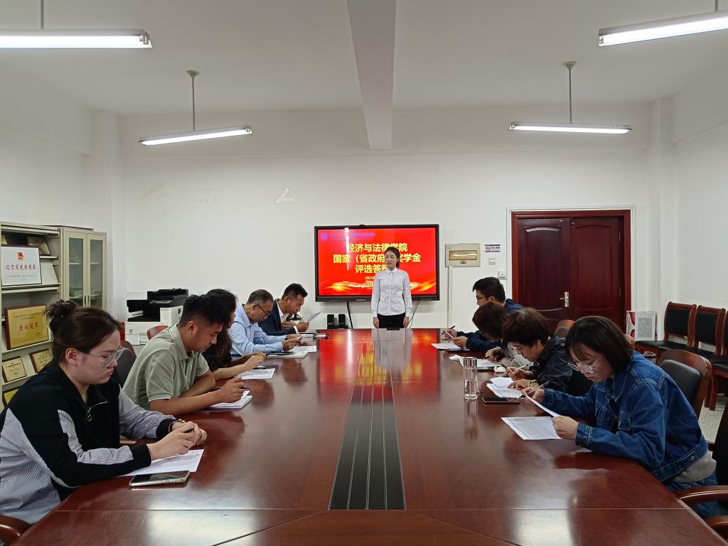 为发挥奖学金激励作用以及优秀学生的示范引领作用,9月18日下午,经法学院于博识楼A305召开2023-2024学年度本科生国家(省政府)奖学金答辩评选会。评委会由经法学院学生工作负责人、学办主任、辅导员以及班主任、任课教师和学生代表组成,经学生申请、学院评议后,共11名候选人进入本次答辩。