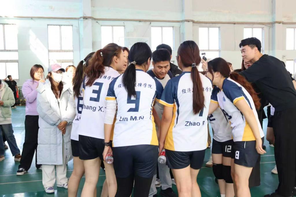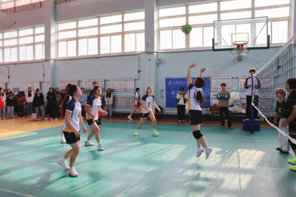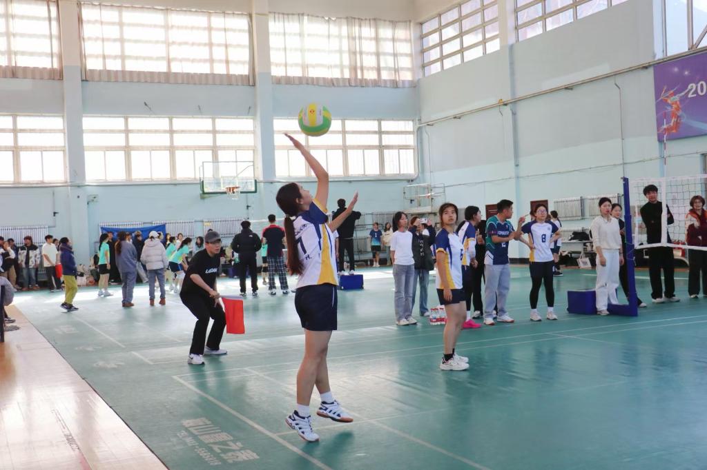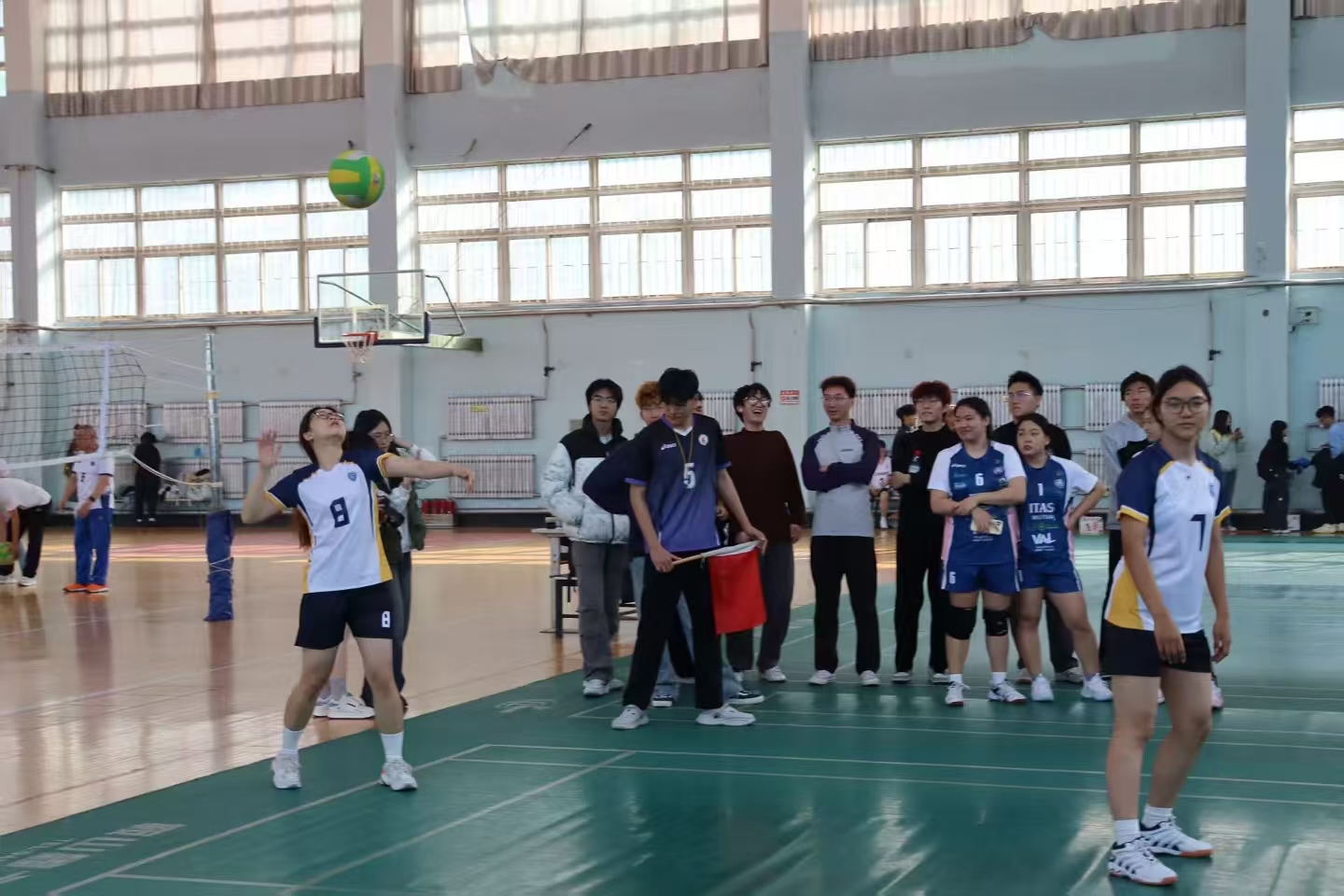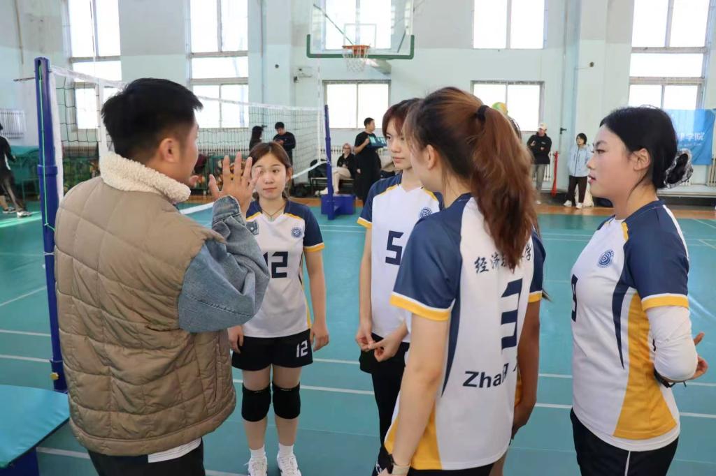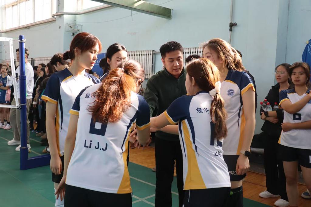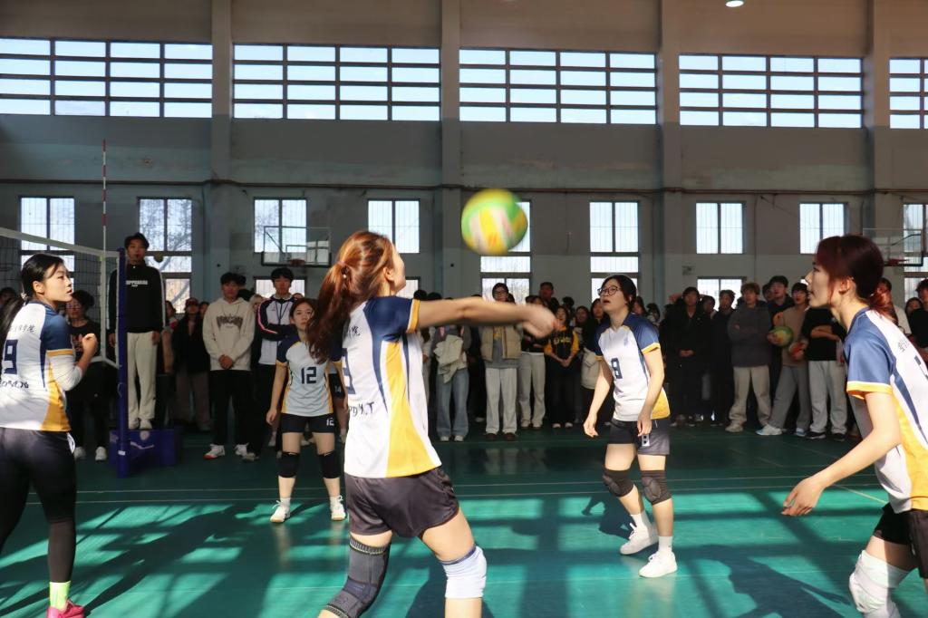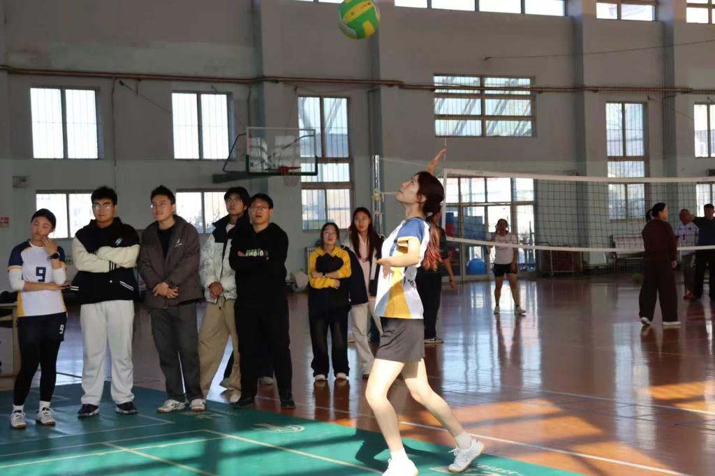 比赛期间,团委书记张鹏飞老师凭借深厚的排球专业积淀,在关键时刻对比赛节奏、战术策略及对手弱点进行精准研判,为队员提供及时有效的指导。与此同时,场边同学们的热情加油与鼓励,也成为女排队伍坚定前进的强大支撑,让每一位队员都带着信念与热血全力以赴。