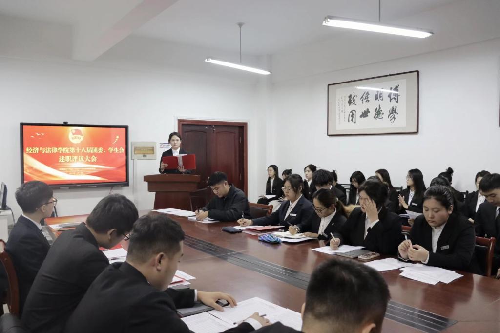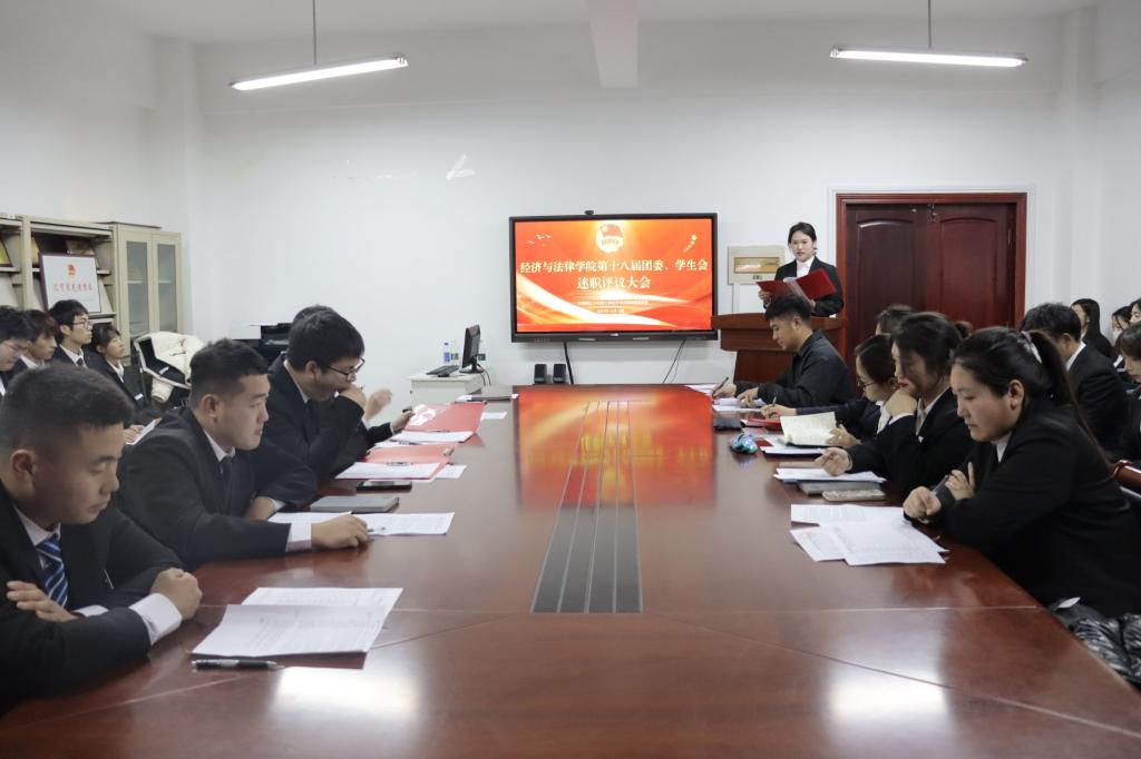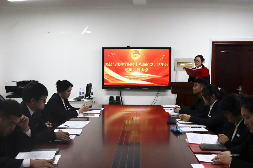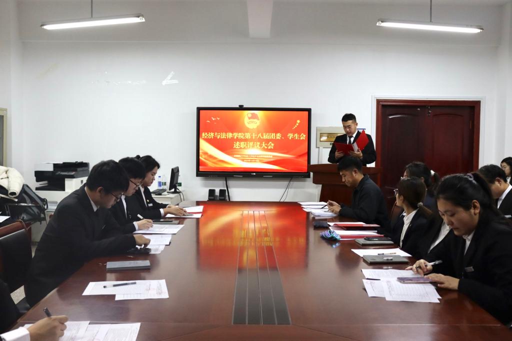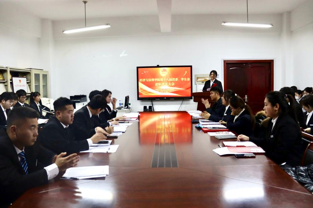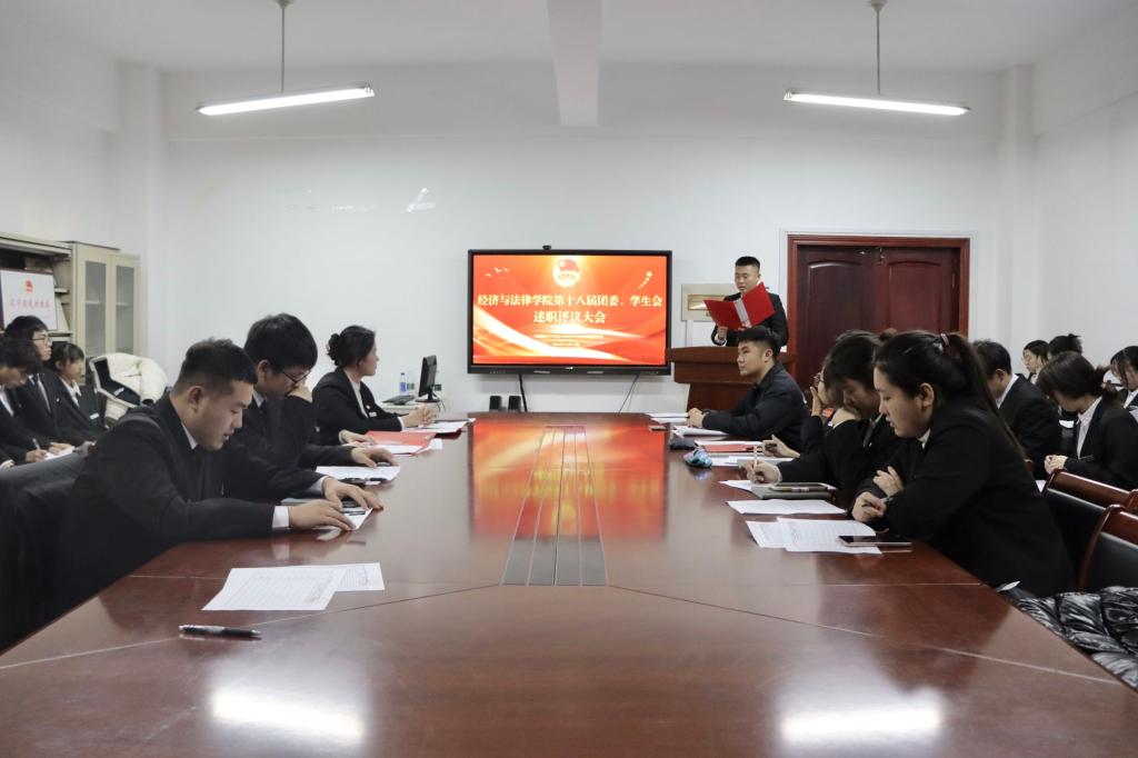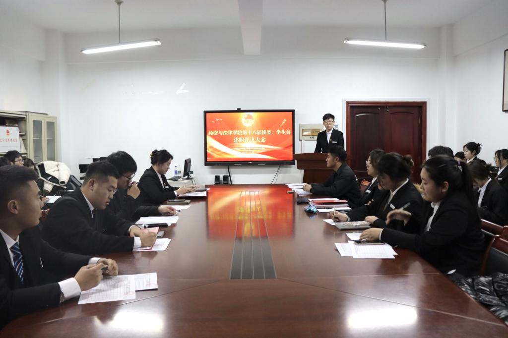 12月12日下午,经法学院于博识楼A305召开第十八届团委、学生会述职评议会,学院团委副书记张鹏飞及全体团学骨干参加了本次会议。会议由学生会执行主席兼办公室负责人吴雨纯主持。