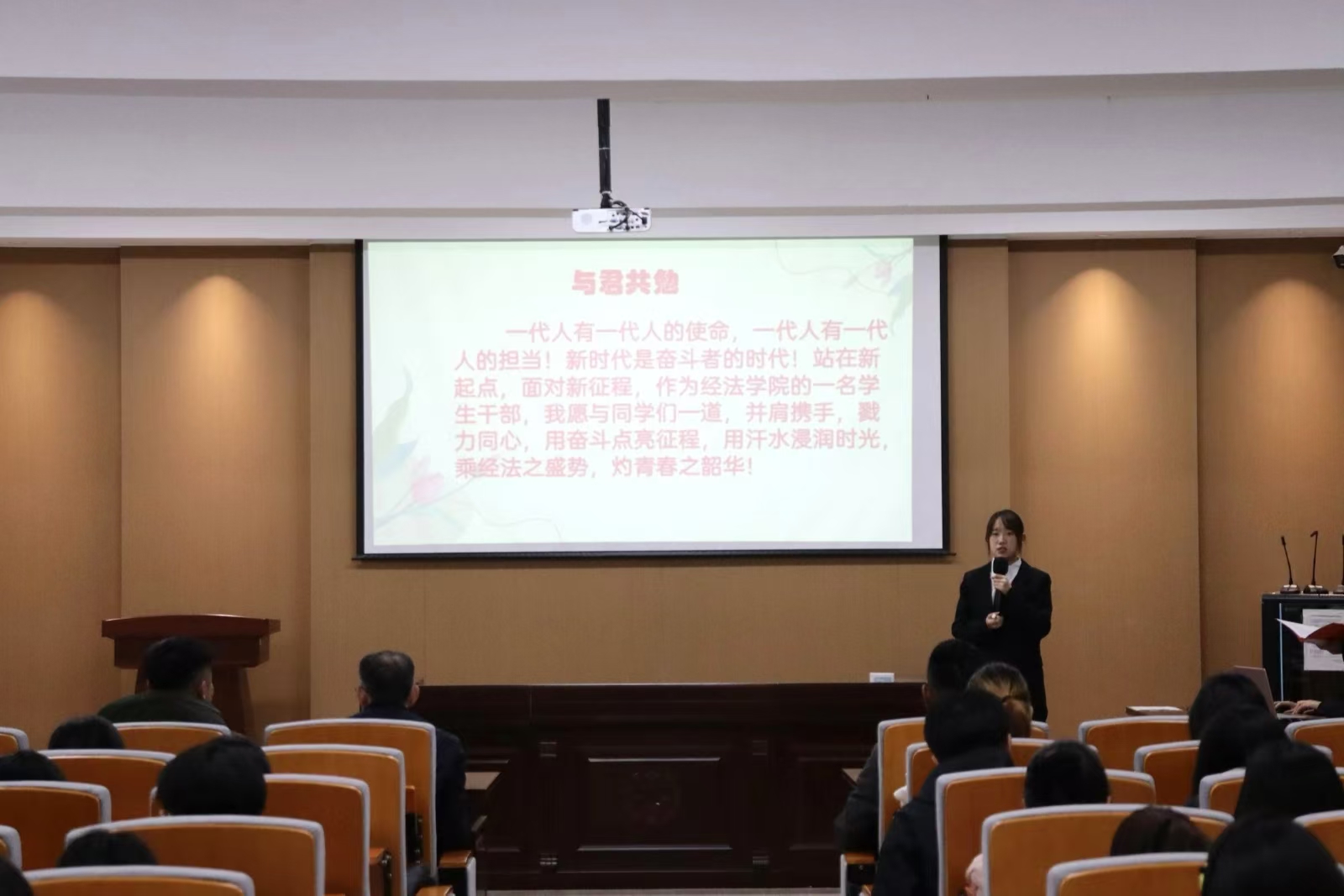 学院党委副书记张国华进行总结发言。他明确表示,班委会作为学生工作的关键力量,应立足本职岗位,以积极主动的态度去发现问题、解决问题,确保沟通渠道的通畅无阻,保障各项工作得以圆满完成。同时,张国华书记着重强调了服务合作意识在学生骨干工作中的重要意义,鼓励学生骨干从全方位、多角度提升自身素质,以适应日益复杂的工作环境和更好的工作要求。他表达了对学生骨干所寄予的殷切厚望,希望每一位学生骨干都能够以身作则,时刻展现出经法学院学生积极向上、勇于担当的优良形象,为学院的发展增光添彩。