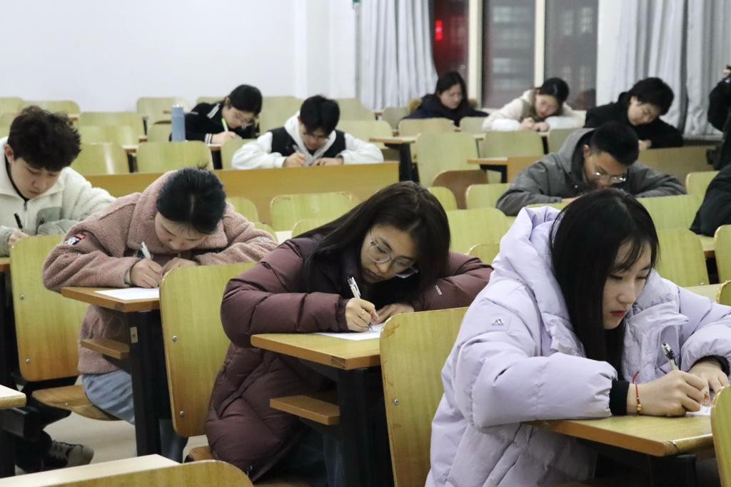 笔试环节,考试现场纪律良好,每个考生都全神贯注地投入到考题中,他们认真书写每一道题目,将自己对学生工作的热情与未来的憧憬融入每一道题目的解答中,展现出严谨的态度和专业的素养。