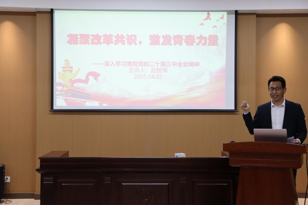 学院党委书记赵智博作“凝聚改革共识,激发青春力量”主题宣讲。他深入解读党的二十届三中全会取得的主要成果,指出此次会议对于动员全党全军全国各族人民团结奋斗、锐意进取,以进一步全面深化改革开辟中国式现代化广阔前景具有重要意义。同时引导同学们坚定不移听党话、跟党走,怀抱梦想又脚踏实地,敢想敢为又善作善成,努力成长为堪当民族复兴大任的新时代好青年!