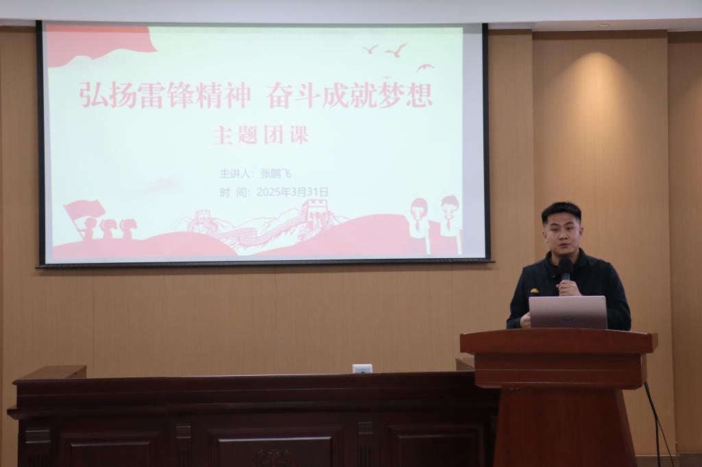 学院团委副书记张鹏飞为学员们上“弘扬雷锋精神,奋斗成就梦想”主题团课。他从雷锋同志简介、什么是雷锋精神、为什么要学习雷锋和怎样学习雷锋四个方面向同学们进行讲解,通过展示雷锋同志的真实故事及经典语录,引导同学们进一步领会雷锋的奉献精神和“钉子”精神。他鼓励团员青年学习雷锋“人人为我,我为人人”的思想,在考虑自己能力范围的同时主动帮助他人,将学习雷锋精神落实到实际行动中,内化于心,外化于行。