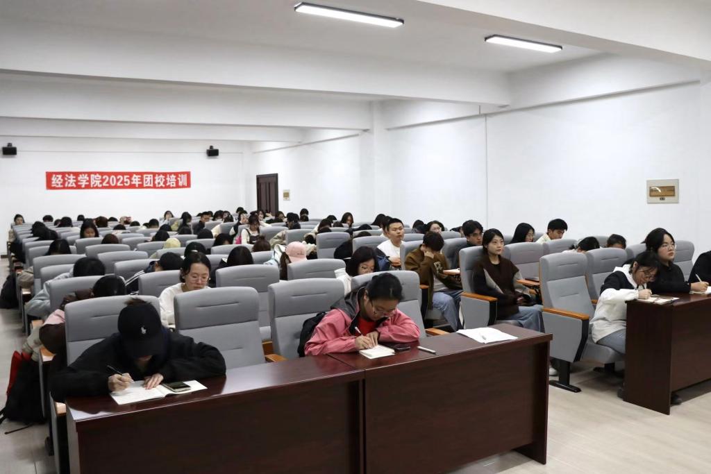 3月31日至4月7日,经法学院组织开展2025年上半年团校培训。学院党委书记赵智博、党委副书记张国华、团委副书记张鹏飞、组织员王艺霏以及“青年·说”大学生理论宣讲团成员分别作专题讲座,有59名团员参加培训。