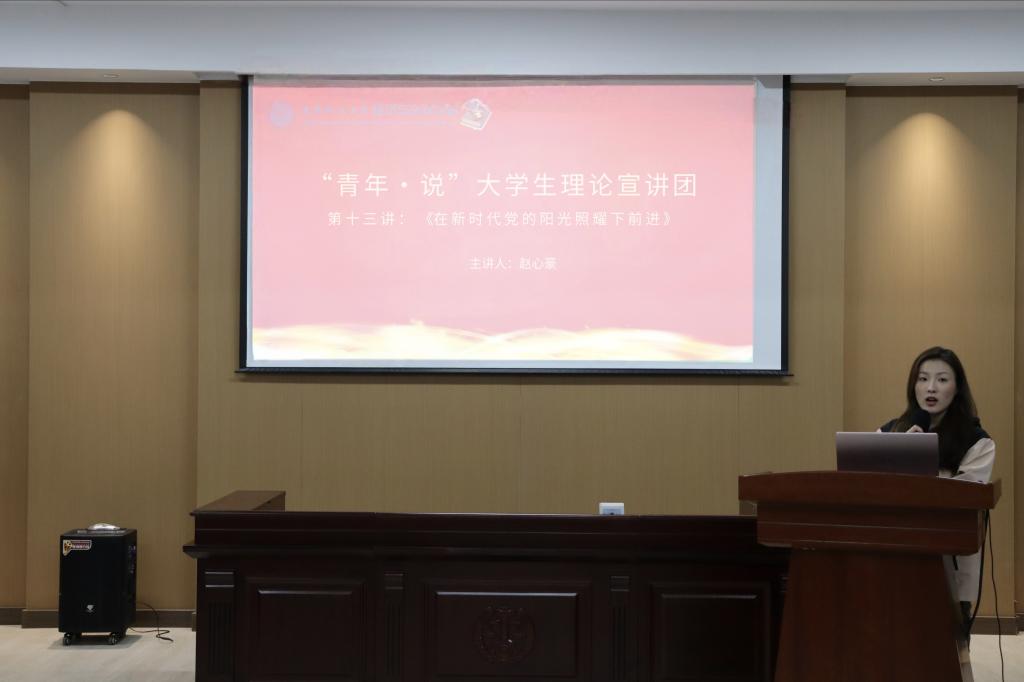 宣讲会上,赵心豪以“在新时代党的阳光照耀下前进”为主题,引领同学们回顾历史,从中总结出“青春,乃是我们党与生俱来的优秀基因”这一宝贵经验。她提出,中国梦不仅是国家的宏大愿景,更是每一位中国青年矢志不渝追寻的梦想。赵心豪倡议全体同学,要铭记习近平总书记的殷殷嘱托,立鸿鹄志,坚定不移地践行社会主义核心价值观,做新时代的奋斗者,为祖国的繁荣发展贡献自己的力量。