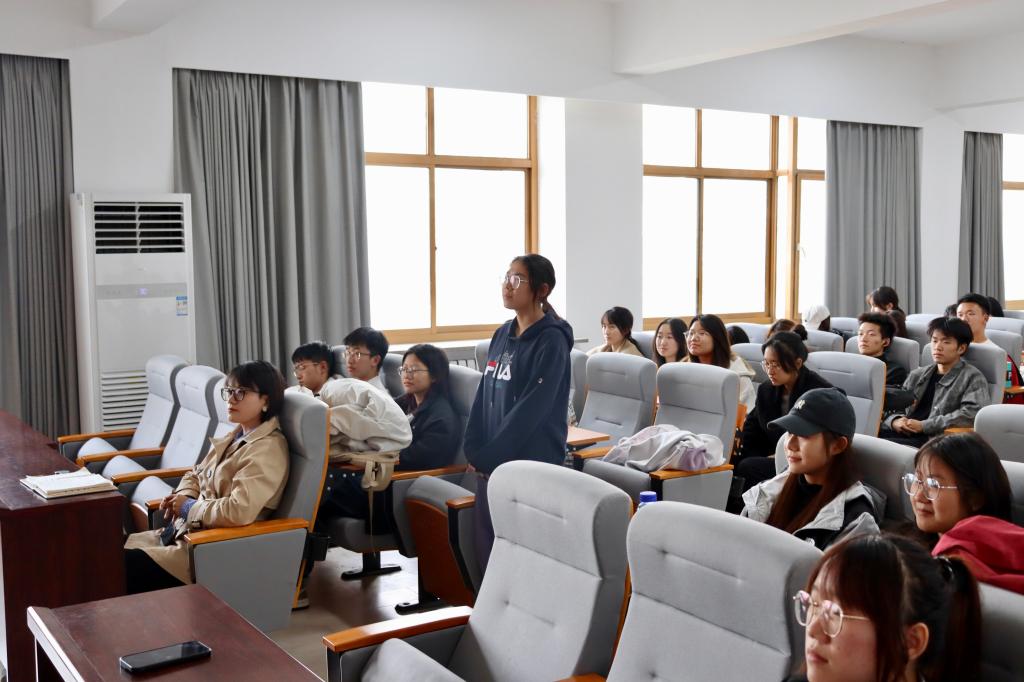 金融231班班长孔思文则从班级组织架构建设与日常行为管理入手进行分享。她表示,班干部在集体中应找准自身定位,不仅要完成分内工作,更要善于发现问题、回应需求,以良好示范力和沟通力推动班级管理不断优化。