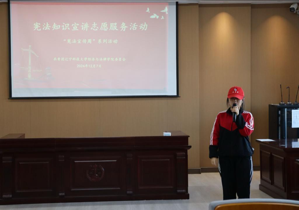12月7日,经法学院于博识楼A402模拟法庭开展“宪法宣传周”系列活动之志愿服务宣讲。本次活动由学院团委志愿服务中心主任汪雪娥主持,学院近120名学生参加。