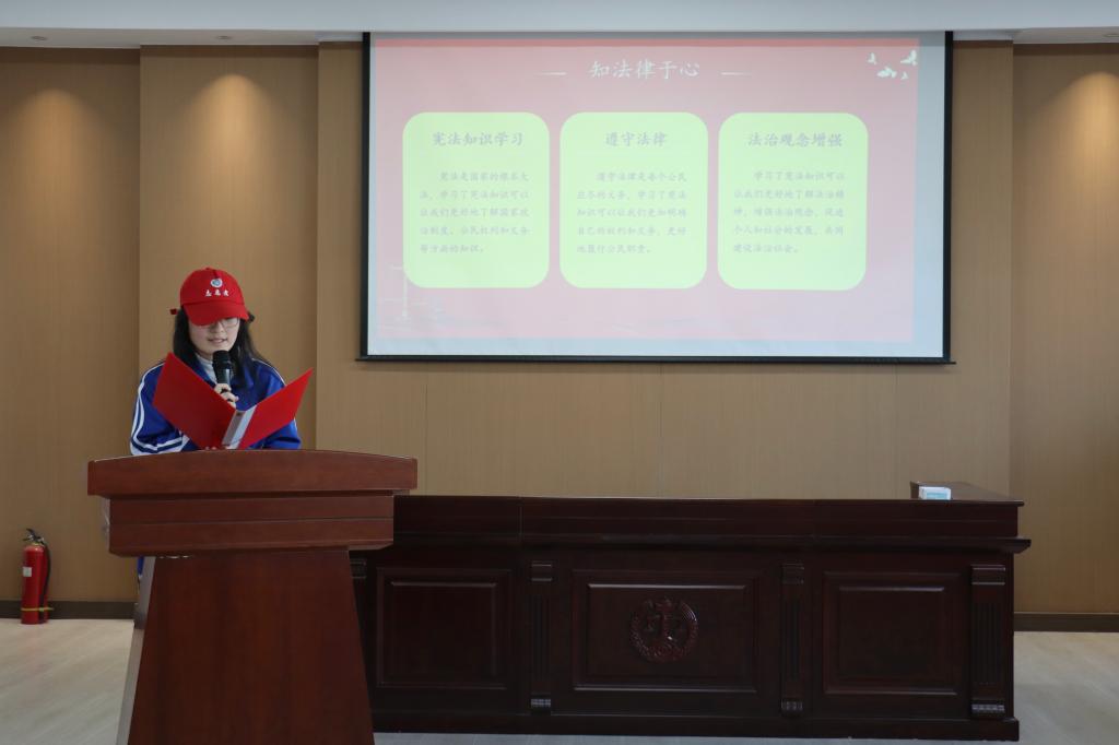 学院团委志愿服务中心副主任郭晓彤做题为“知法律于心,守法律于行”主题宣讲。她分别阐述了“知法律于心”和“守法律于行”的深刻内涵和具体要求,介绍了宪法在日常生活中的重要意义。她指出,作为新时代青年,应积极学习宪法、宣传宪法以及践行宪法,将宪法精神植根于中国特色社会主义伟大实践,为实现中华民族伟大复兴的中国梦而努力奋斗。