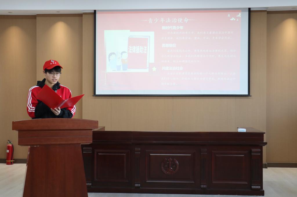 活动中,学院团委学生副书记兼实践与社团指导中心主任刘帅家做题为“弘扬法治精神,建设法治中国”主题宣讲。他通过列举相关普法案例,生动展现了我国法治建设的丰硕成果,彰显出法治建设在日常生活中的重要作用。他指出,新时代青年要不断提高法治素养,用自己的行动为祖国发展贡献力量。