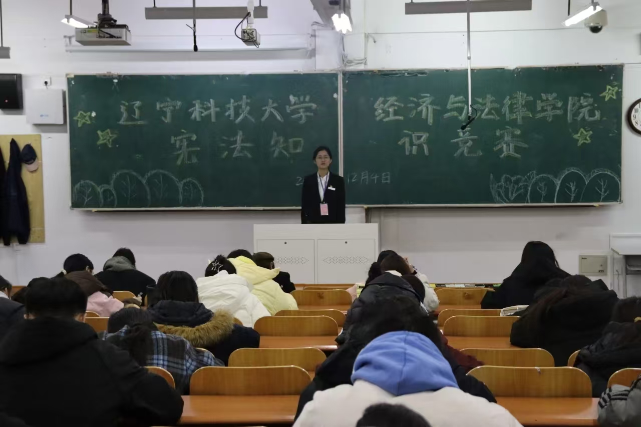 12月4日,经法学院于博学楼C112开展宪法知识竞赛。学院学生会主席团成员许秀、张涵及学生会办公室工作人员担任监考员,学院近100名同学参加了本次竞赛。
