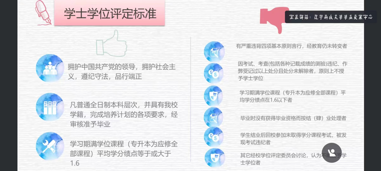 培训根据学生需求和关切,选取了《乐竞·体育(中国)官方网站本科学生学籍管理执行细则》《乐竞·体育(中国)官方网站考试工作管理规定(试行)》《乐竞·体育(中国)官方网站大学生学业发展指导工作实施意见(试行)》等10个教学管理制度文件,重点围绕学籍学位、考试和选课、学业发展三大方面为学生进行制度解读,使信息员同学对学习过程中应知的相关管理规定和要求有更清晰的认识,以便为学生学业发展提供更好的支持和服务。