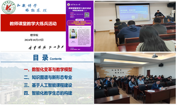 培训会由理学院教学院长刘昊主持。院长屠良平做总结发言,强调教师要敢于创新,勇于尝试人工智能,用人工智能来赋能专业建设和课程建设并有效地融入课程思政;教师要了解教育动态,要想办法把新理念融入课堂教学中。