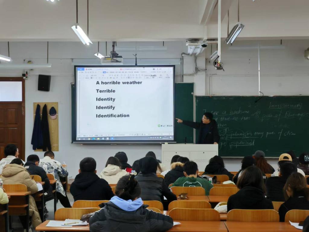 课堂上,老师们对四级考试的最新大纲调整进行了详细阐释,分析了考试内容在词汇、语法、阅读、写作等各板块的重点与难点变化。随后,结合近年四级真题,对听力、阅读、写作、翻译等各题型的命题规律与解题技巧进行了深入讲解。通过对真题的逐题分析,传授高效实用的答题方法,还强调了时间管理与心态调整的重要性。