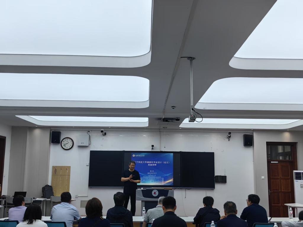 教务处处长周卫红在答辩开始前与专家召开了见面会,他表示毕业设计(论文)是学校人才培养方案中最重要的综合性教学环节,是对学生四年专业学习的全面淬炼。学校对此项工作高度重视,持续优化过程管理与质量监控,形成校、院两级答辩机制。经过多年的探索与完善,学校本科毕业设计(论文)质量在逐步提高,为本科教学质量工程建设注入强劲动能,成为提升学生学术水平的关键引擎。周卫红恳请专家以严格标准评审,为本科教学质量跃升精准把脉,并对专家们的远道而来与辛勤付出致以诚挚谢意。