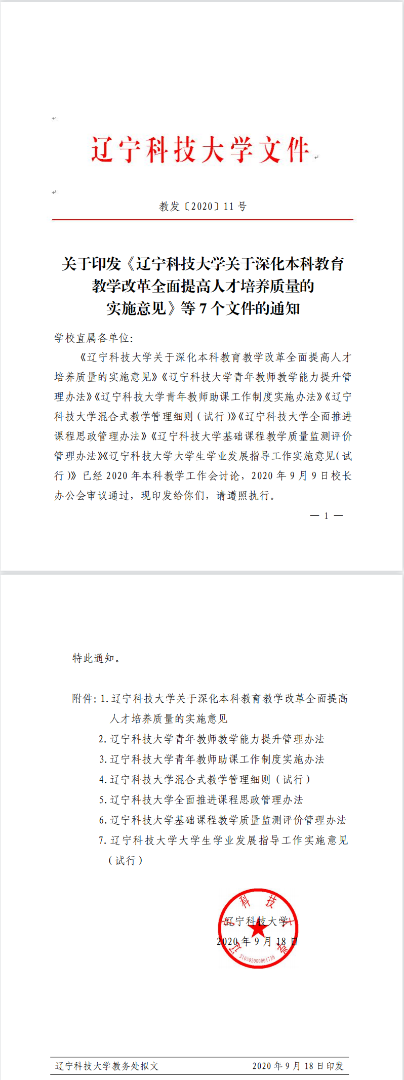 教发〔2020〕11号 关于印发《乐竞·体育(中国)官方网站关于深化本科教育教学改革全面提高人才培养质量的实施意见》等7个文件的通知