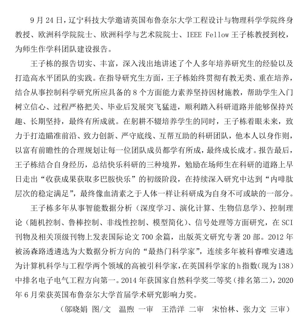 乐竞·体育(中国)官方网站邀请王子栋院士作学科团队建设报告