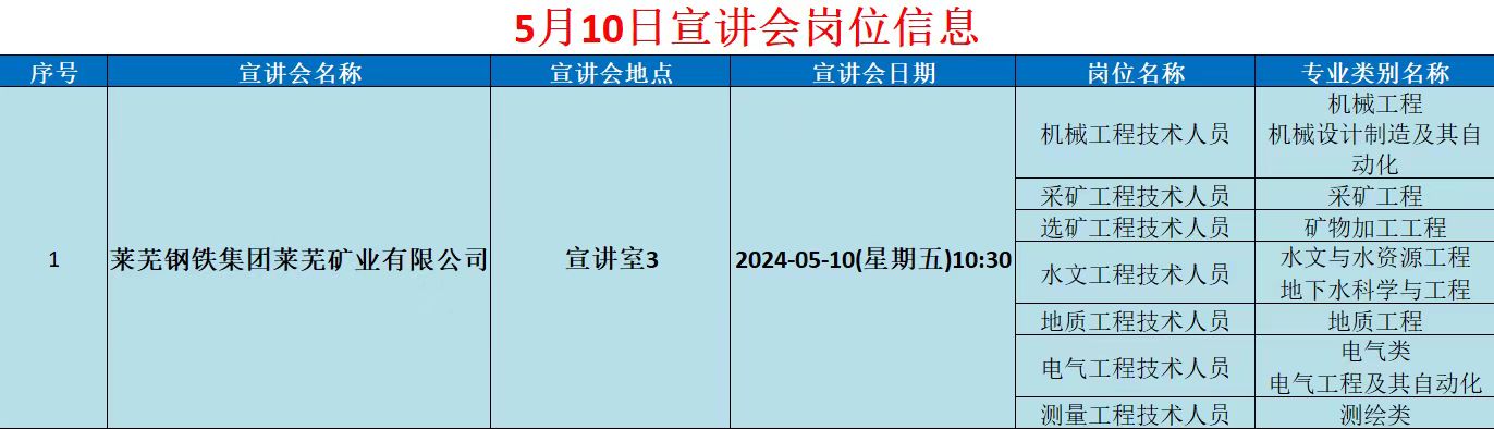 矿业工程学院五月宣讲会岗位信息