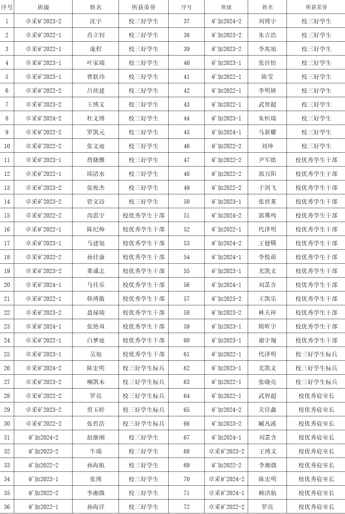 矿业工程学院2024-2025学年度校内评优奖项公示