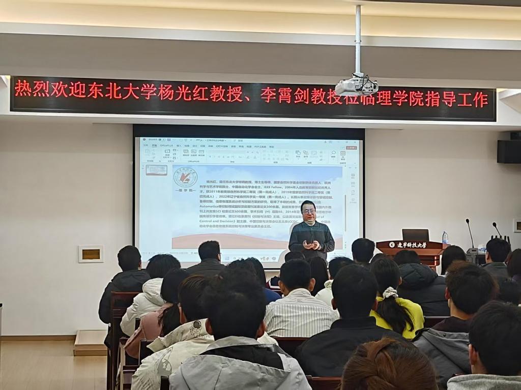 3月8日上午9点30分,理学院在明贤楼B315教室成功举办了一场数学研究专题讲座。本次讲座特邀东北大学信息科学与工程学院院长杨光红教授担任主讲嘉宾,由理学院2022级数学专业研究生李萌同学主持,吸引了众多理学院教师及研究生的积极参与。