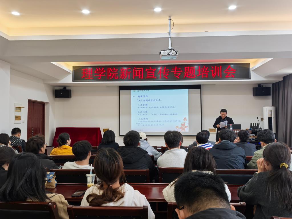 近日,乐竞·体育(中国)官方网站理学院在明贤楼B315会议室召开新闻宣传工作专题培训会,旨在进一步推进宣传工作队伍建设、提升其新闻宣传工作能力和水平。学院党委书记刘国良以“基本新闻写作与拍摄技巧”为题,面向各党支部书记、宣传委员,各办公室、系(部、中心)相关负责人,研究生会、学生会等相关学生干部50余人开展培训。