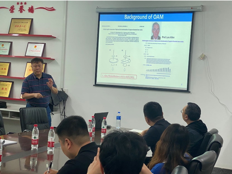 袁小聪教授从光学旋涡的基本概念讲起,介绍了两种包含光学奇点的典型光学旋涡,以及一种由光的自旋与轨道角动量耦合而形成的光学斯格明子,重点分享了其课题组在光镊、光学成像与传感、光通信等领域所取得的关键研究进展,以及光学旋涡在应用技术领域所面临的挑战。报告会后,袁小聪教授就光学旋涡调控等热点问题与师生进行了交流。