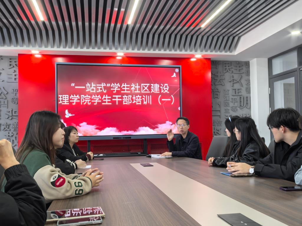 为进一步提高学院学生干部的综合素质,增强自我教育、自我管理、自我服务意识,增强学风管理成效,理学院于2024年10月24日中午在校一站式学生社区召开学生干部系列培训会,培训由党委副书记侯立臣、团委书记宋薇主讲,参会人员有理学院学生会分团委主席团及各部门负责人共计12名学生干部。