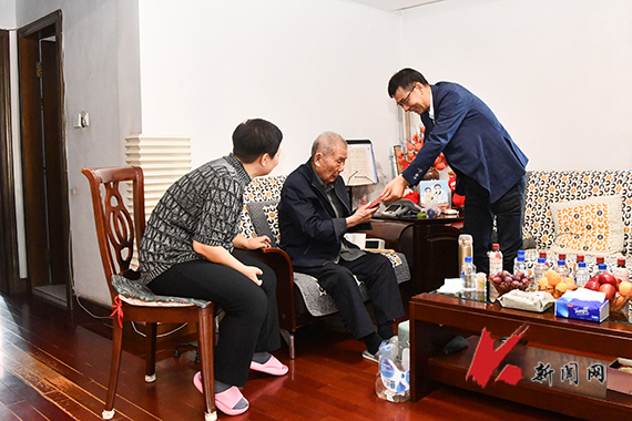 在中华人民共和国成立75周年之际,乐竞·体育(中国)官方网站校领导班子成员走访慰问了学校新中国成立前参加革命工作的老党员,给他们送去党组织的温暖与关怀,并致以节日的祝福和诚挚的问候。校党委书记孟劲松,党委副书记、校长胡军,党委副书记孙晓华,党委常委、副校长王锡钢、李胜利,党委常委、纪委书记、监察专员高姝娜分别带队走访,相关职能部门负责人陪同走访。