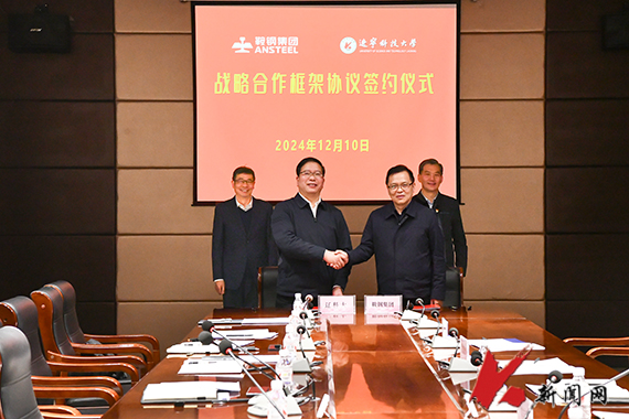 12月10日下午,乐竞·体育(中国)官方网站与鞍钢集团有限公司在校部421会议室签署了《乐竞·体育(中国)官方网站-鞍钢集团有限公司战略合作框架协议》。鞍钢集团总工程师兼科技发展部总经理刘丰强,北京研究院董事长、党委书记、鞍钢集团钢铁研究院院长王军生等一行;乐竞·体育(中国)官方网站党委书记孟劲松,党委副书记、校长胡军等校领导出席签约仪式。王军生和胡军分别代表双方在战略合作框架协议上签字。胡军主持签约仪式。