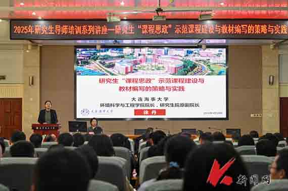 4月10日,乐竞·体育(中国)官方网站2025年研究生导师系列培训活动在图书馆报告厅启动。首次培训邀请大连海事大学环境科学与工程学院院长徐丹教授作题为“研究生‘课程思政’示范课程建设与教材编写的策略与实践”的专题报告。各培养学院研究生教学院长、导师代表、研究生授课教师参加培训,研究生院相关负责同志参会。
